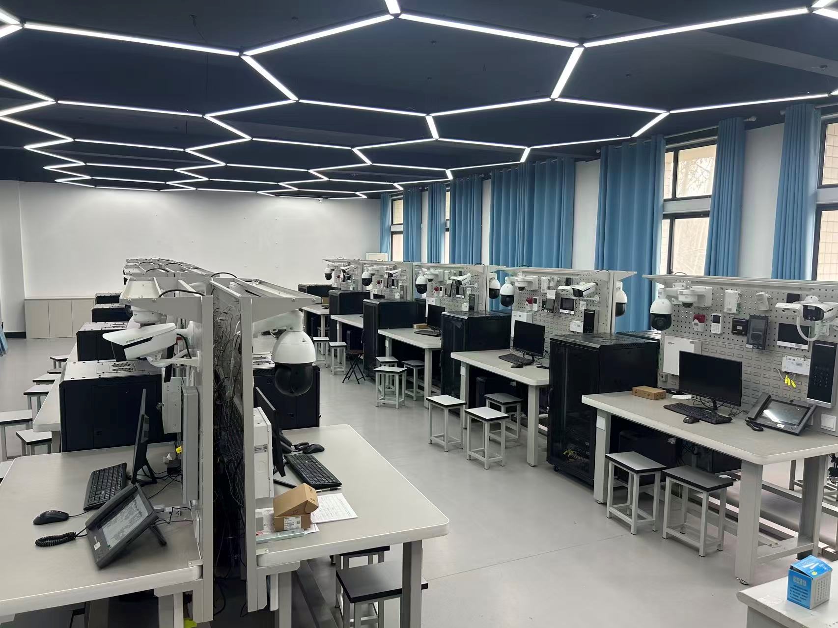本实训室建筑面积126平方米,设18个标准实训工位,主要面向物联网应用技术、人工智能技术应用专业,是集教学、实训、竞赛、科研与社会服务于一体的综合性实践平台。